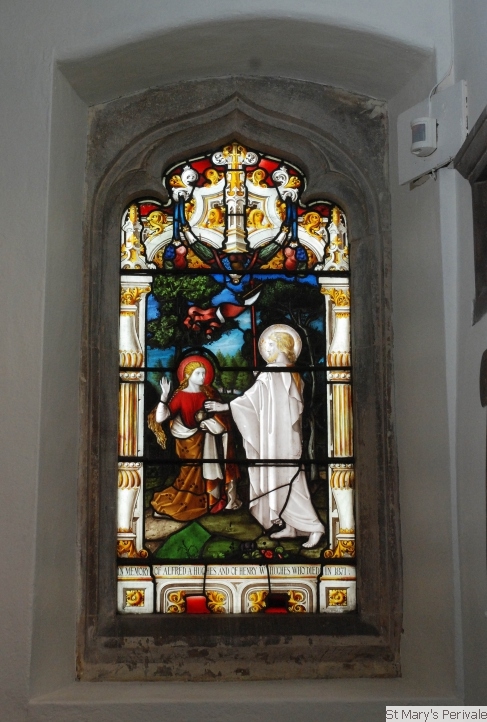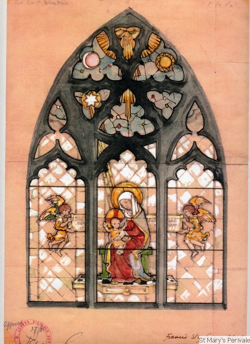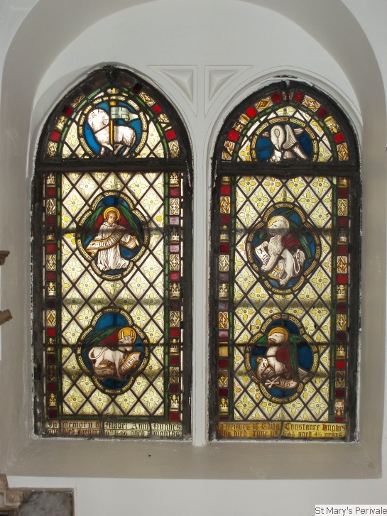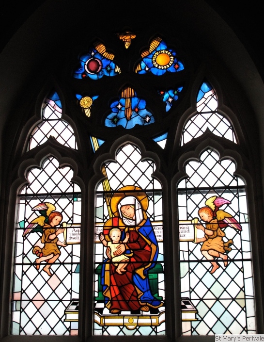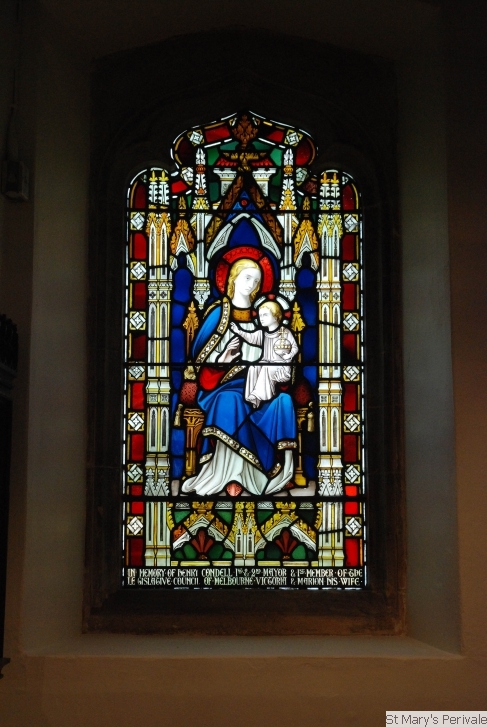 Stained Glass WindowsThe church contained much stained glass prior to the Victorian restoration of 1875, but the only glass surviving from earlier times are two 15th century fragments in the north chancel window, showing the heads of the Virgin Mary and St John. The south wall of the chancel contains a stained glass window commemorating two of Rev Hughes' daughters who died in childhood, namely Mabel Amy aged 3 months (1866) and Edith Constance aged 4 1/2 years (1868). At the west end of the nave there are two windows with attractive Victorian stained glass. That on the north side was installed in memory of Henry Condell, the first Mayor of Melbourne, by his son (who is buried in the churchyard), and restored by donation from the Mayor and Corporation of Melbourne. On the south side, the window is dedicated to two brothers of Rev Charles Hughes, Henry and Alfred, who died in 1871 within a month of each other. The east window shows a Nativity scene and was designed by Francis Stephens ARCA and installed in Autumn 1966 following the major restoration of the chancel and rebuilding of the east wall in 1965.